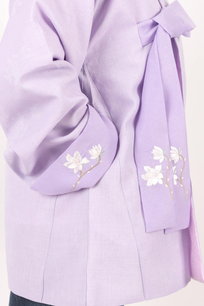 2025년 첫 번째 이달의 색 은은하고 차가운 연보라 빛 반두루마기를 준비했습니다.