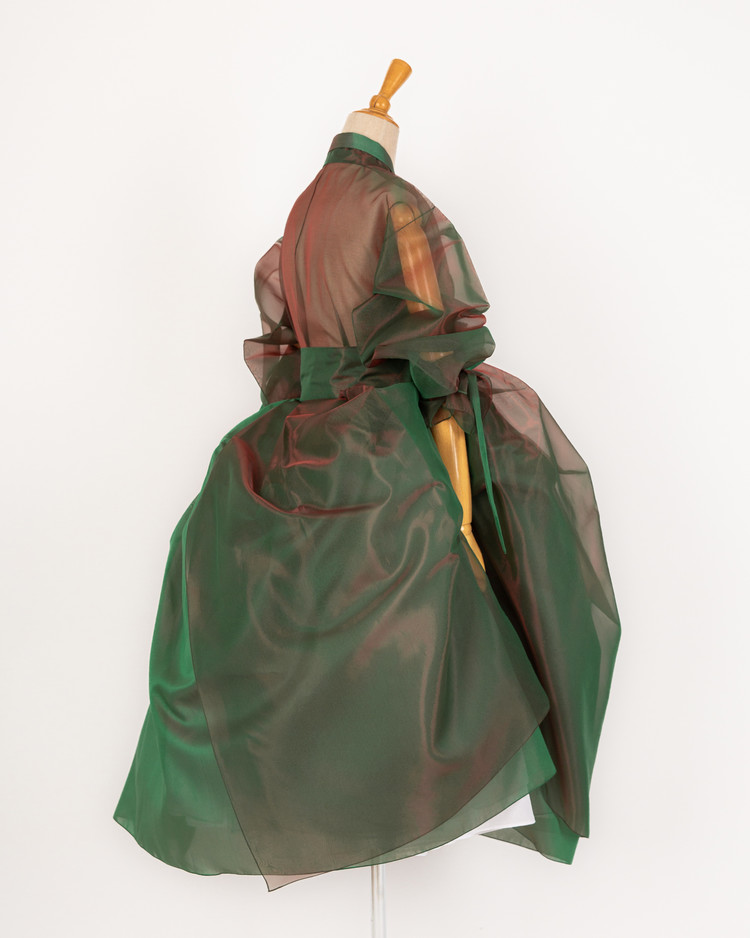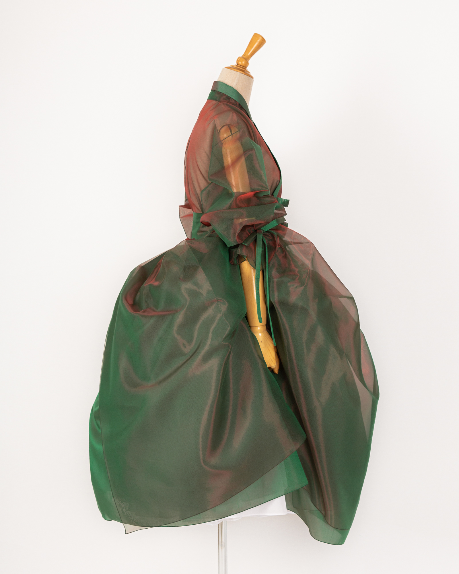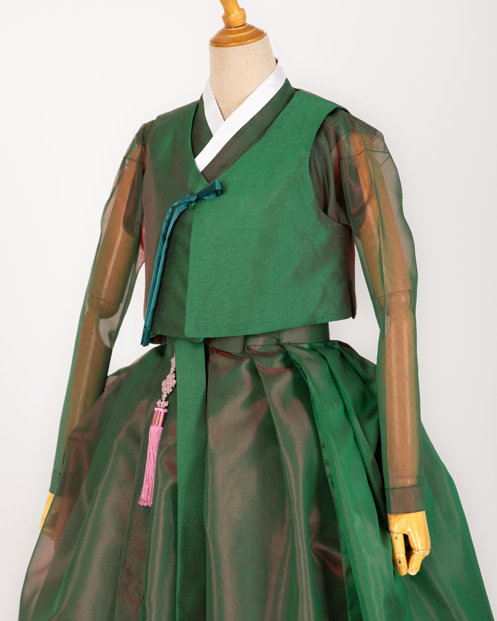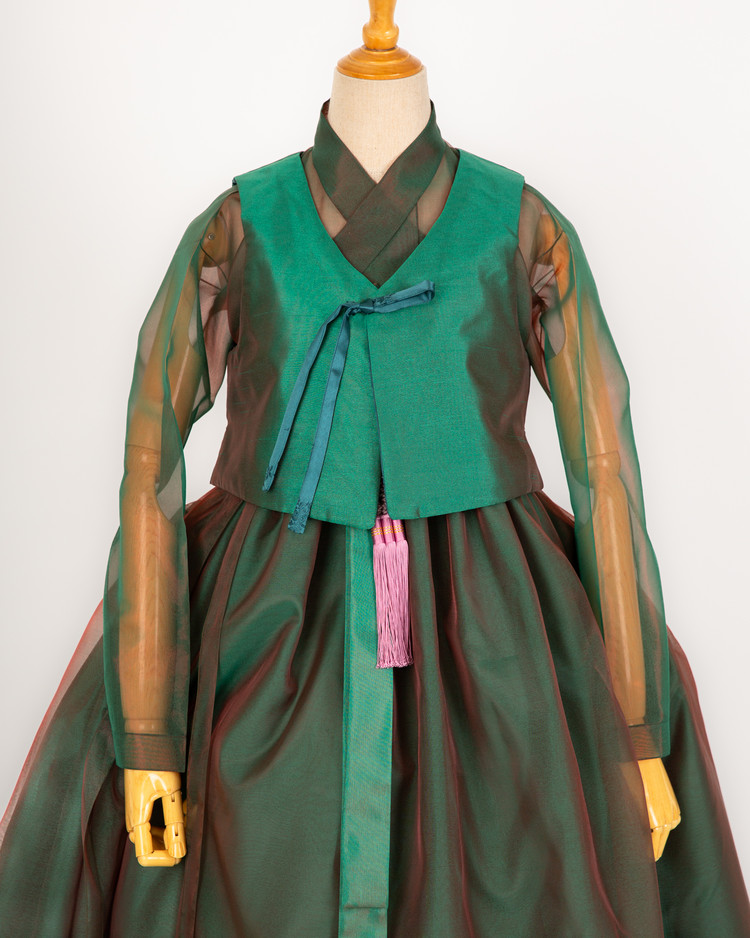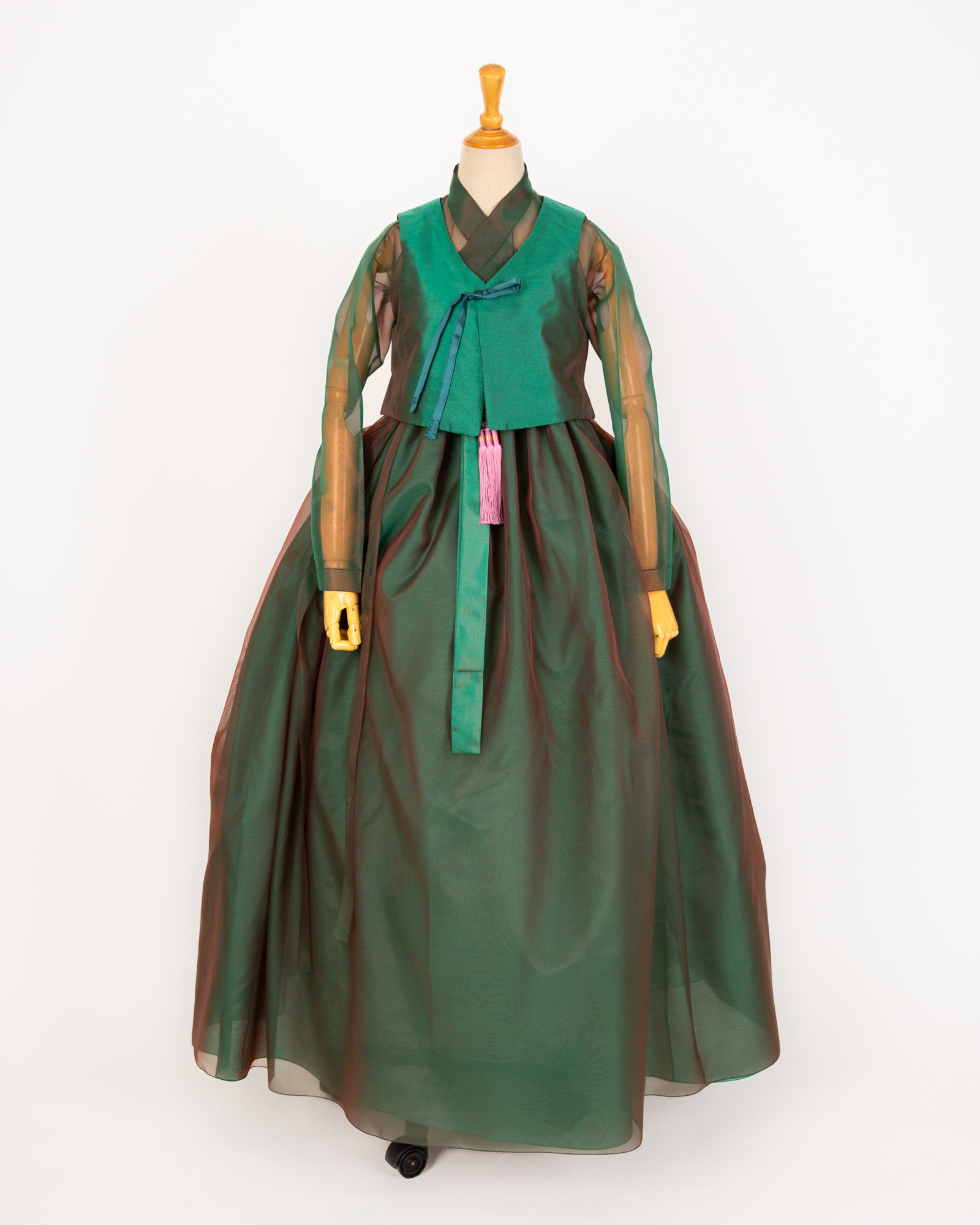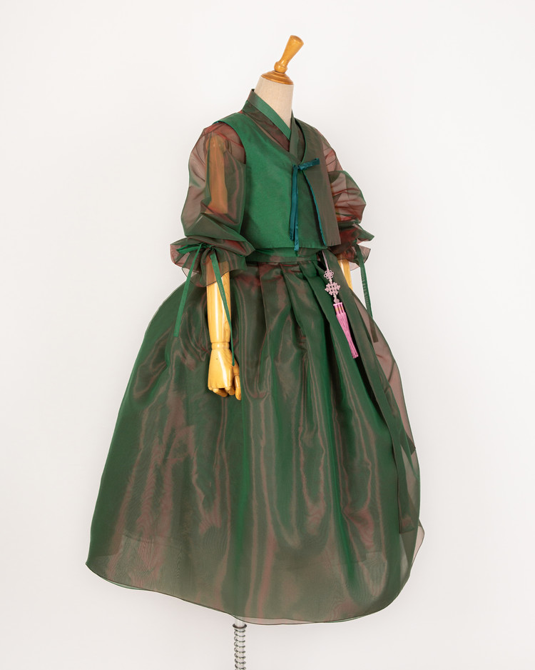 한복의 핵심 구성 요소인 깃, 고름, 동정, 섶을 생략하지 않고 평면패턴으로 제작하여