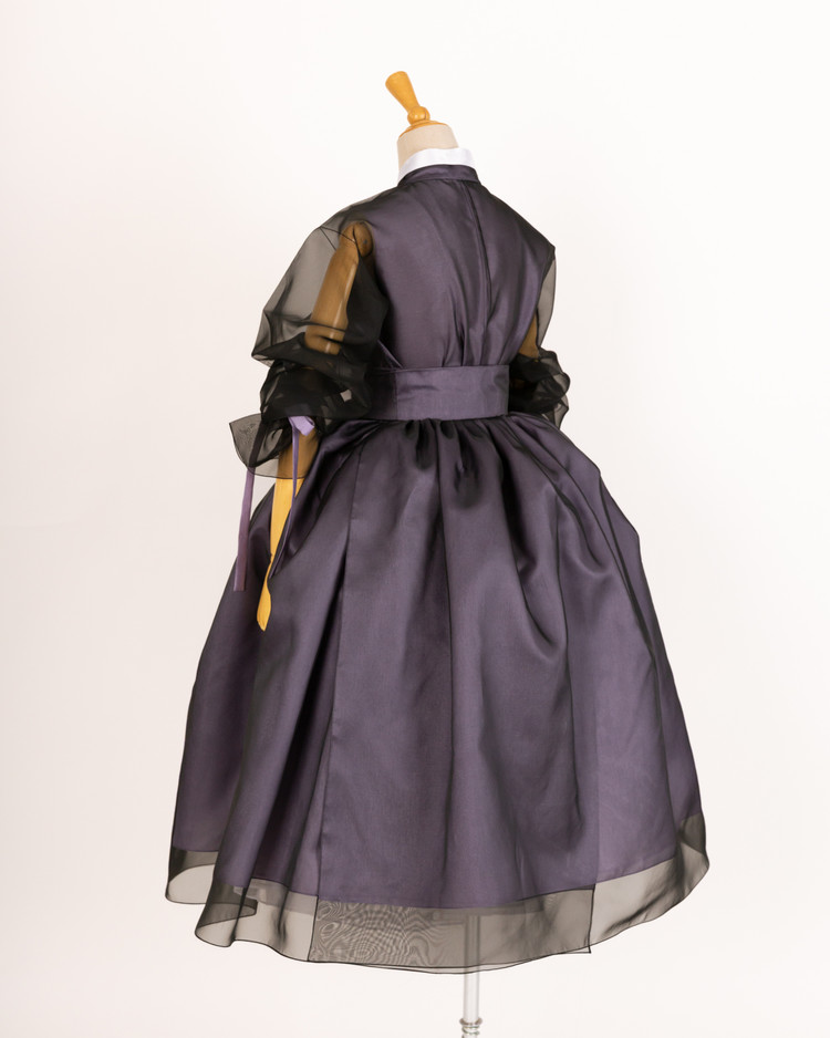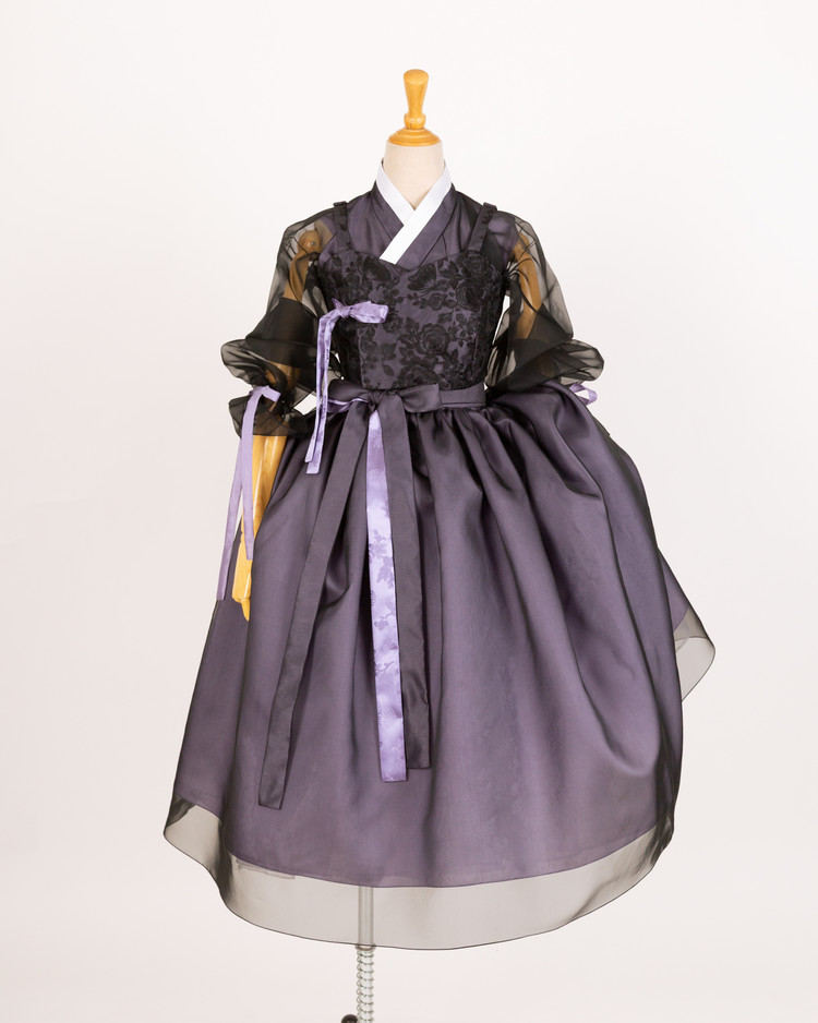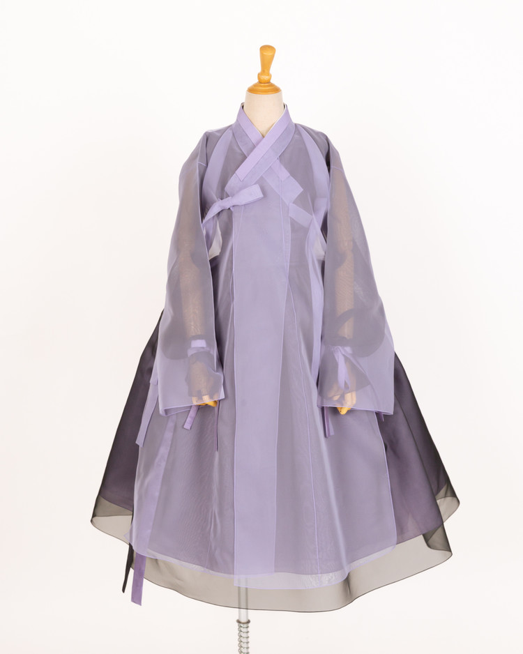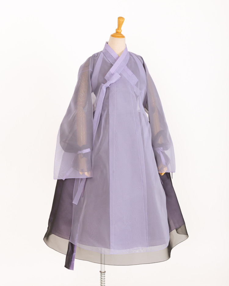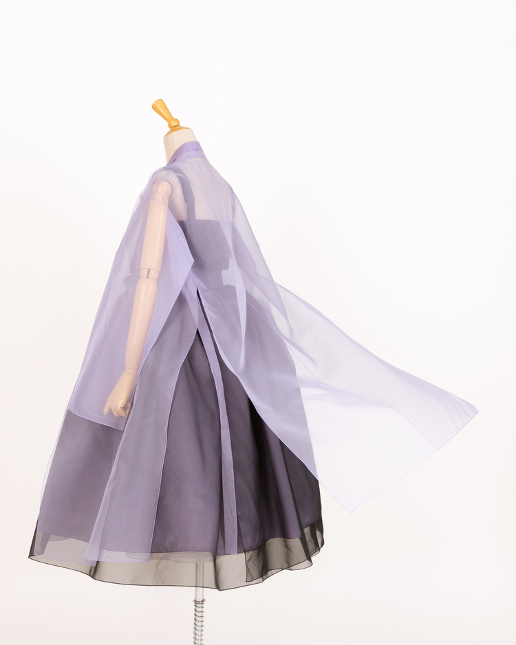 한복의 핵심 구성 요소인 깃, 고름, 동정, 섶을 생략하지 않고 평면패턴으로 제작하여